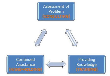 Our unique methodology helps us address problem of our clients who have varied degree of IT competence - starting from BASIC to EXPERT. Once initial assessment is done, then we are able to give a customised solution to our clients clearly articulating the different steps involved in their journey of finding solution to their problem.